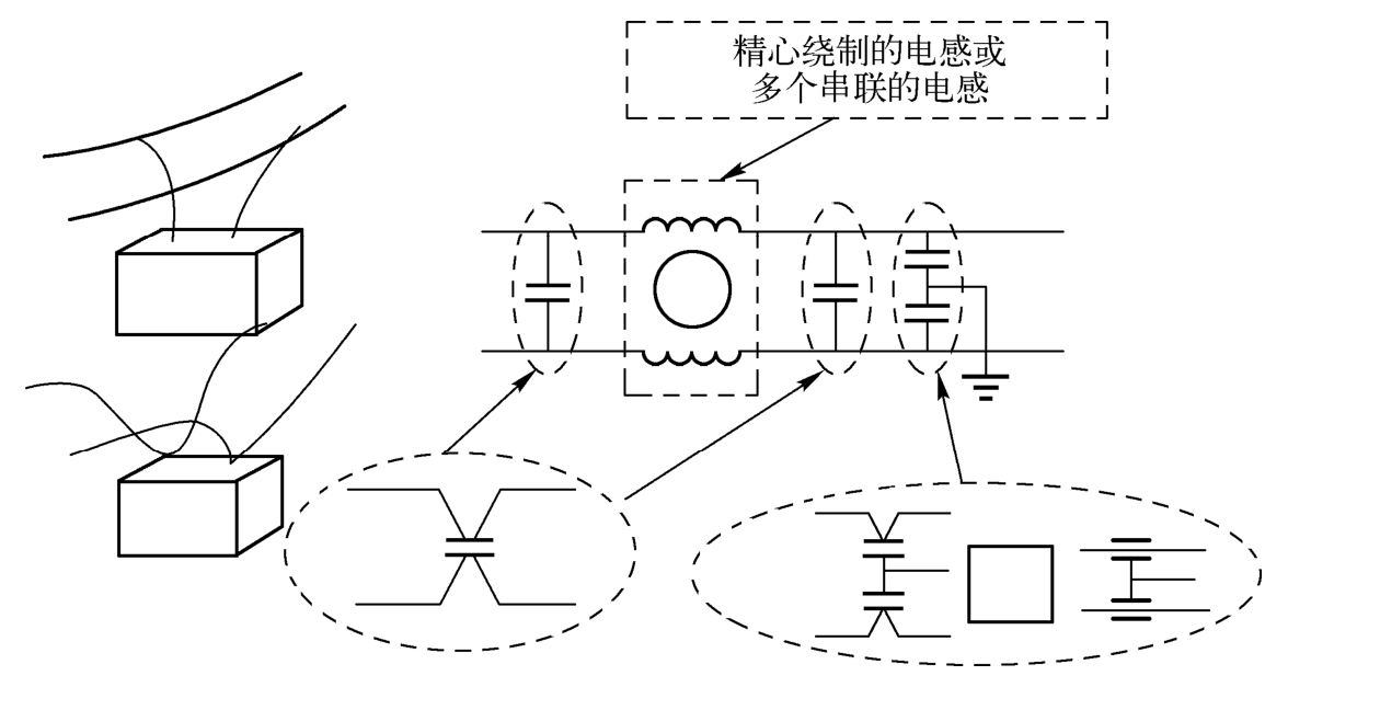 为了提高滤波器的高频特性,要尽量减小电感上的分布电容和电容上的寄生电感,所采取的措施如图5-34所示。