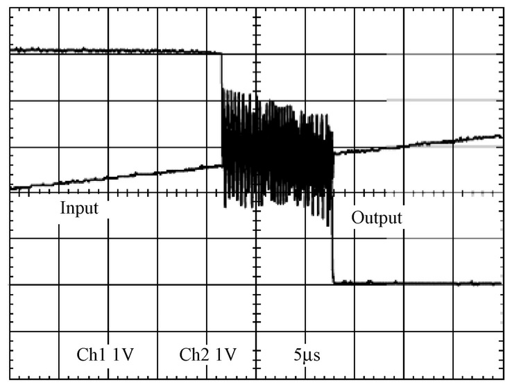 图3.3是CMOS器件输入端处于非稳态时,输出端发生的振荡波形。