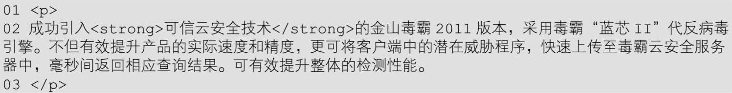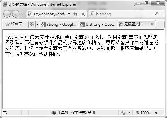 同样一段文字,用strong标签突出强调之后,代码如下,效果如图2-17所示。
