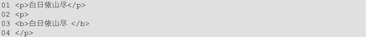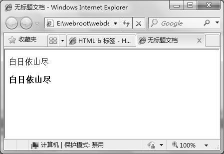 在图2-15中,上面一行为普通格式,下面一行为使用b标签加粗的文字。
