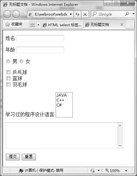 (7) disabled: 该属性表示表单域处于无效状态,无法选择,以灰色显示,在表单中不起任何作用。