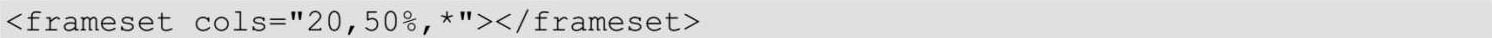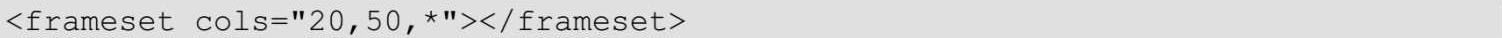 上面代码把浏览器窗口垂直分成3列,左边1列宽度为20像素,中间1列宽度为50像素,右边1列占据剩下宽度的像素。