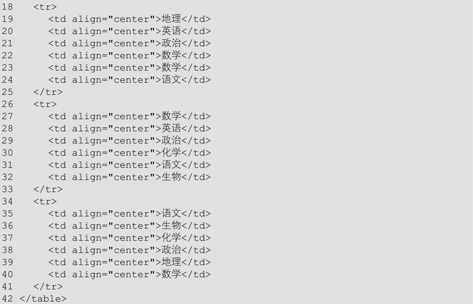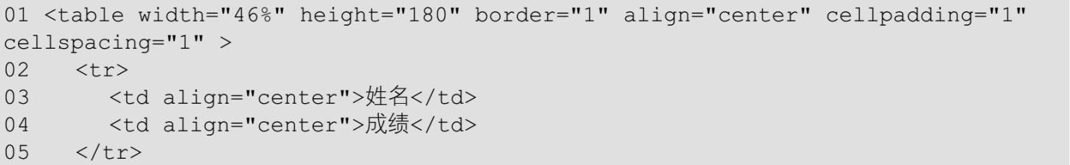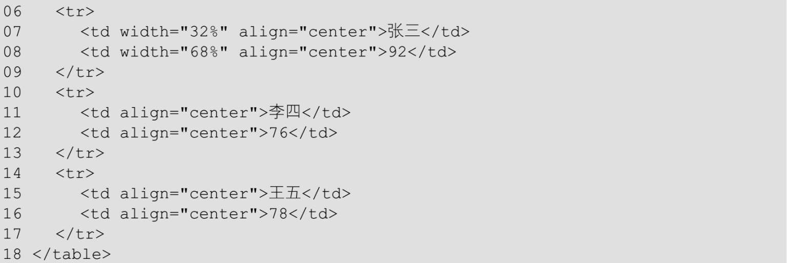 table标签定义HTML文档中的表格。该标签成对出现,开始标签是<table>,结束标签是</table>。