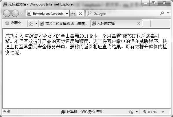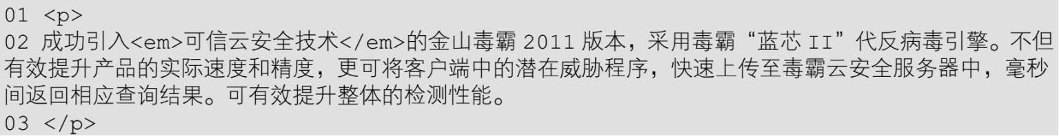 在以上代码中,为了突出“可信云安全技术”的重要性,在这个词组上加上了em标签。显示效果如图2-16所示。