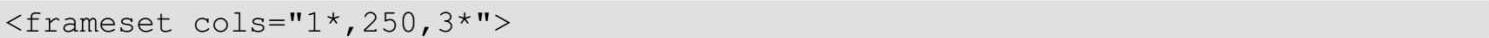 上面的代码使用相对百分比来设置框架的宽度,把浏览器窗口垂直分成3列,中间1列占250像素,左边1列和右边1列分别占剩下的25%和75%。