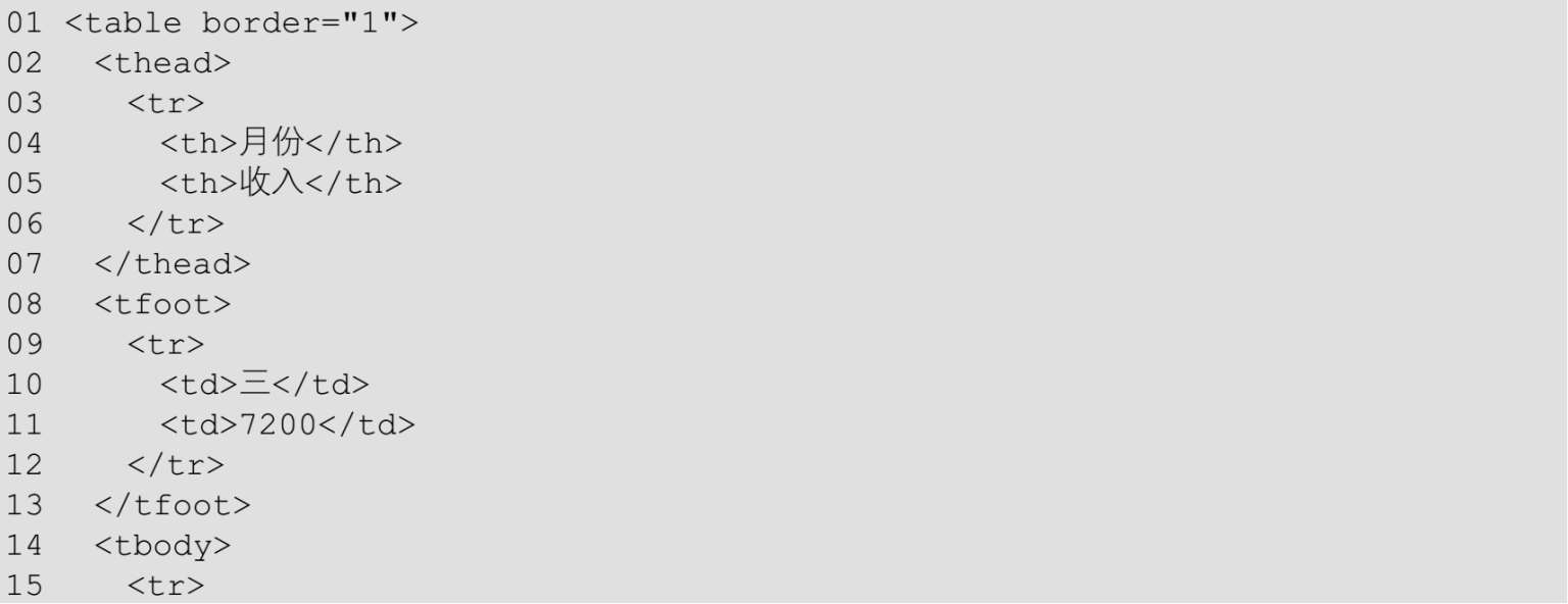这3个标签使得用户有能力对表格中的行进行分组。当用户创建某个表格时,希望拥有1个标题行,若干带有数据的行,以及位于底部的1个总计行。这种划分使浏览器有能力支持独立于表格标题和页脚的表格正文滚动。当长的表格被打印时,表格的表头和页脚可被打印在包含表格数据的每张页面上。