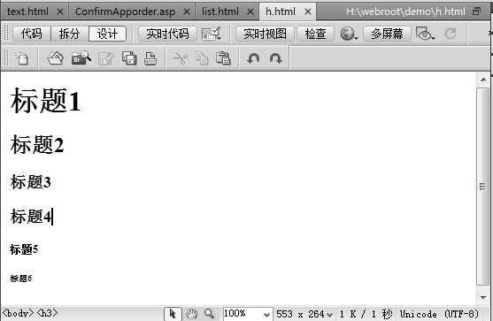 前面已经介绍过,在HTML里面已经预定义了h1~h6共6种标题格式,Dreamweaver也完全支持这6种标题的设置,具体方法如下。