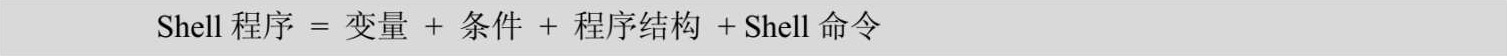 看到这里,读者也许会感叹,Shell程序只不过是将一些Shell命令堆积在一起的代码段。确实如此,Shell程序中的执行主体正是一系列的命令块,加上各种变量、判断条件,以及各种程序控制结构,便可以编写出功能强大的Shell程序。有人甚至这样总结了Shell程序: