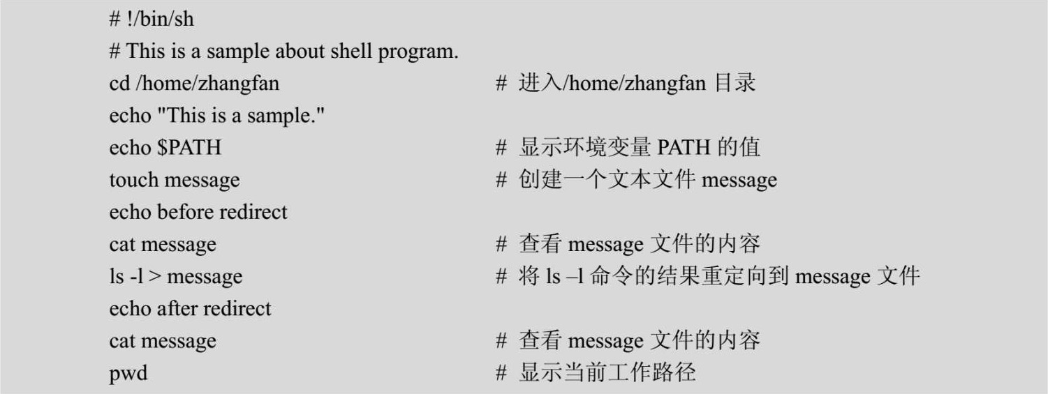 【程序2.1】一个Shell程序的简单示例:sample_shell.sh。
