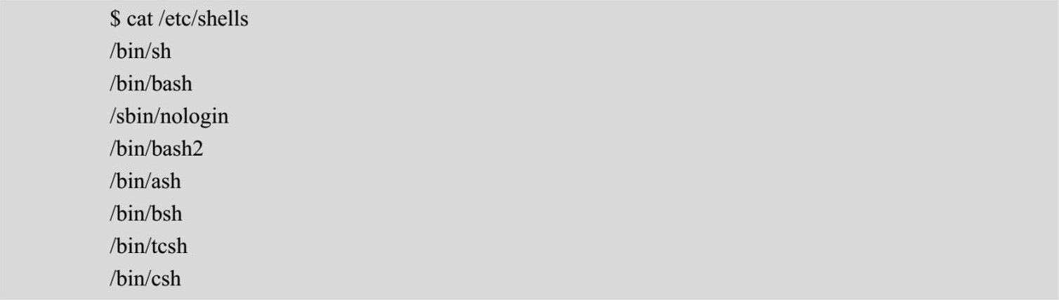 Linux Shell的种类很多,目前流行的Shell包括ash、bash、ksh、csh、zsh等,用户可以通过查看/etc/shells文件中的内容来查看自己主机中当前有哪些种类的Shell,命令如下(下面是在笔者Linux主机中查看信息的结果):