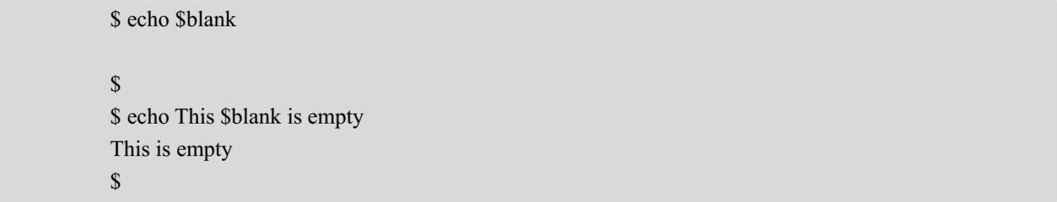 可以看到,Shell没有把blank变量替换成任何字符,因为blank变量的值为空。