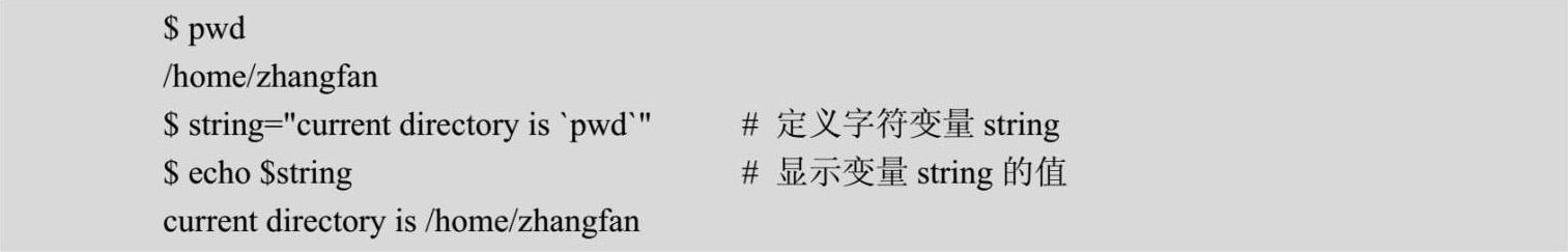 利用反引号的这种功能可以进行命令置换,即把反引号括起来的执行结果赋值给指定变量。例如: