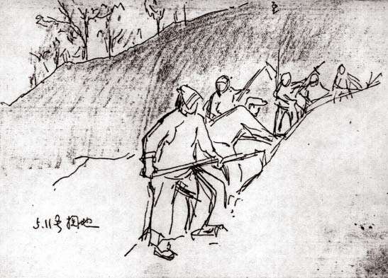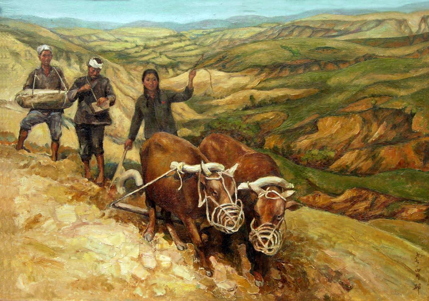 和社员们上山干活,我们女知青从来不示弱,都抢着干重活和男人的活儿。比如陕北的妇女是不扶犁耕地的,但我们女知青非要试试。男人们无奈,他们只好把鞭子交给我们,换到后面去“点种”。当然女生们也只是尝试一把,绝做不了耕地的把式。