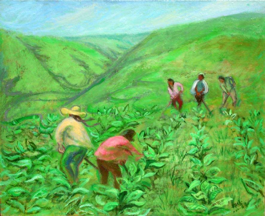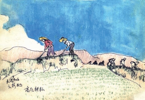 年轻人的特点是适应力强,每天山上干活无论多累,晚上睡一觉,早上起来又是一个新人。渐渐地我们和村里人也熟悉了,大家一起在山里干活,说笑打闹,很是红火。尤其是年轻人之间相互开开玩笑、追追打打的,再听着他们东家长、西家短地“拉话”也挺有意思。收了工,如是春天,他们要顺路砍些柴火背回去;要是秋天,他们就把地里的洋芋蔓子什么的弄到一起,背回去喂猪。傍晚小学生放了学,也纷纷到地里来,帮大人背背筐,担担柴什么的。在农村,老的、小的,没有闲着的人,他们总有活儿干。尤其是夏天每天天不亮四五点钟就起身,男人进山里,女人先做饭,然后挑上担子进山给干活的送饭,直到日落。