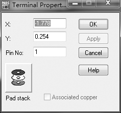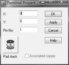 双击焊盘1,在弹出的“Terminal Properties”对话框中设置焊盘1的坐标为(0,0),如图7.21所示。
