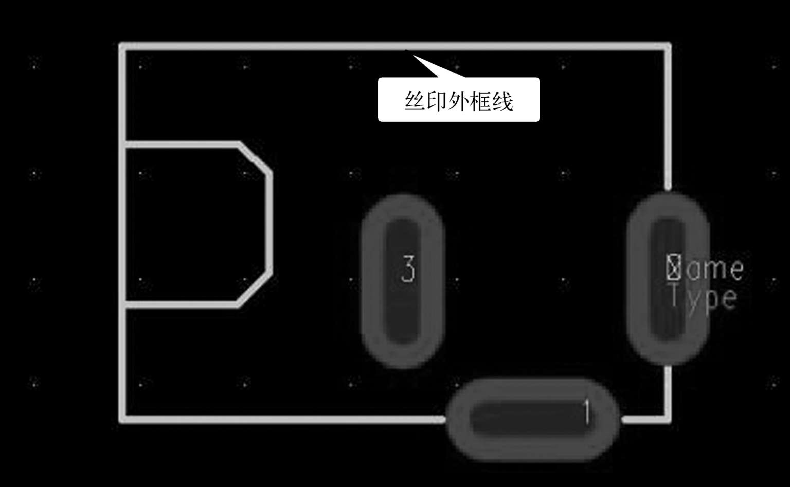 设置好焊盘1、焊盘2和焊盘3的坐标,然后根据实物外形绘制丝印外框,最终效果如图7.42所示。