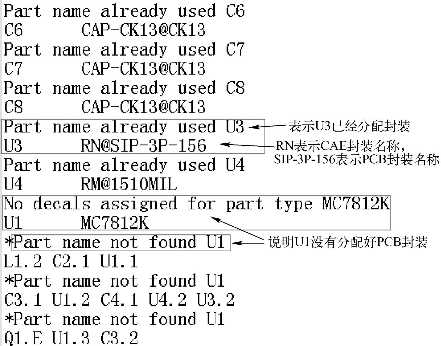 ,发送网络表此时会弹出一,个记事本文件,是否有错误在其中会有说明,如图8.9所示。