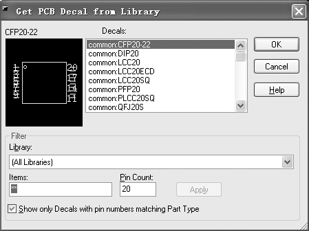 (4)从“Decals”列表框中选择合适的封装后,单击“OK”按钮退出该对话框。