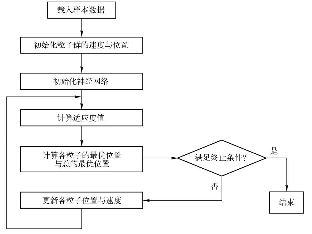 根据对粒子群优化算法的分析进行各参数的选取,粒子群的粒子规模不宜过多。这里粒子的个数取N=20;惯性权重ω的选择沿直线由0.9线性递减至0.4,即ω max =0.9,ω min =0.4;学习因子设为c 1 =c 2 =2;最大限制速度设为V max = 1;最大迭代次数设为T max =2000,最小误差设为ε=0.001。