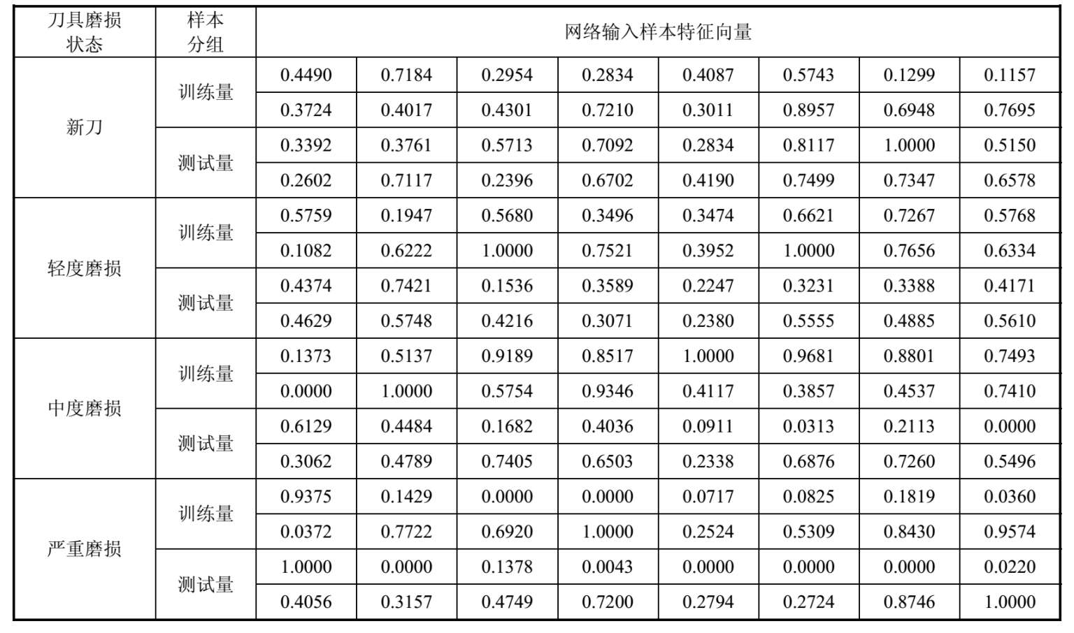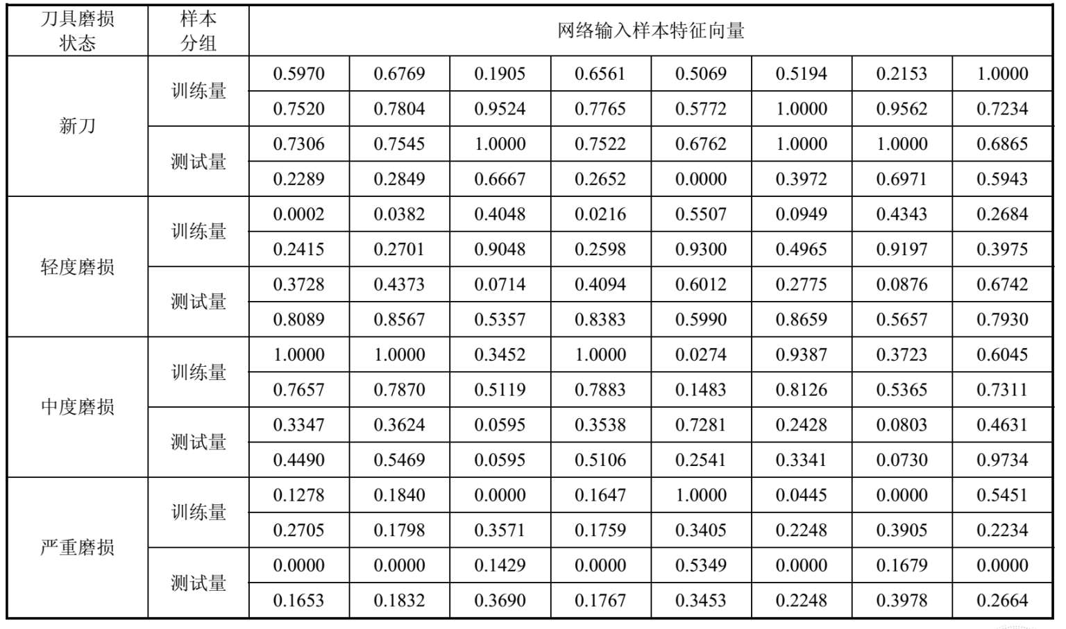表4-1 用于刀具监测的训练样本与测试样本(1)