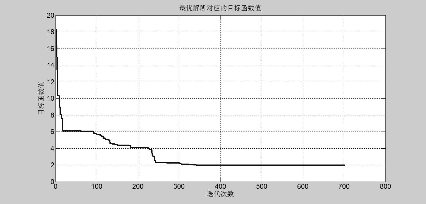 图4-3 最优图对应的目标函数值随迭代次数的变化