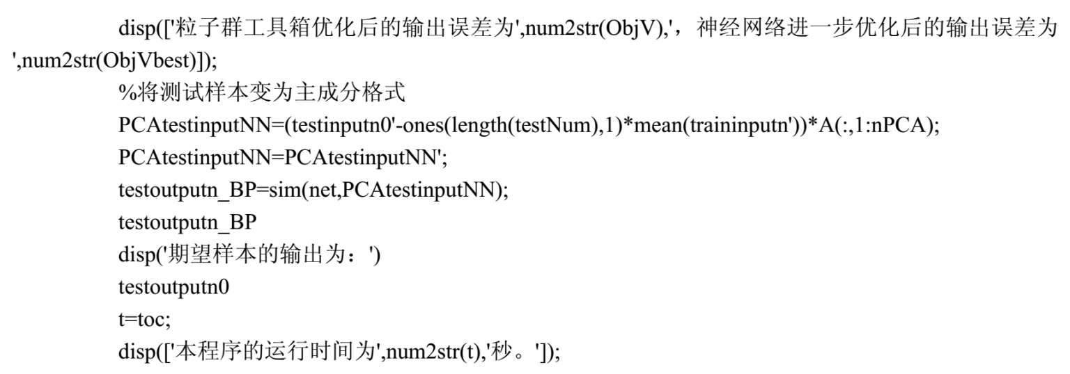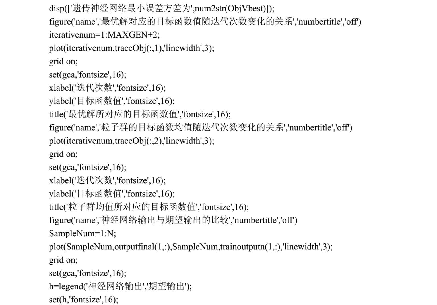 基于PSO工具箱的神经网络源代码与矩阵方法的源代码基本相同,只是PSO工具箱的功能更全,使用更简洁,但它的使用灵活性显然不如矩阵方法,主函数源代码如下。
