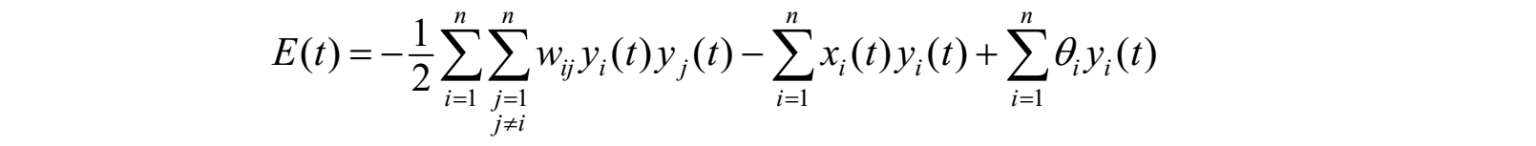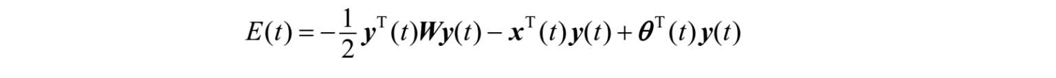 任意一个神经元节点的状态变化时,能量E将向着减小的趋势变化,即对于任何Δt>0,当神经网络从t=0开始,有初始状态y(0),经过有限时刻t,有y (t+Δt) = y(t),则称网络是稳定的。