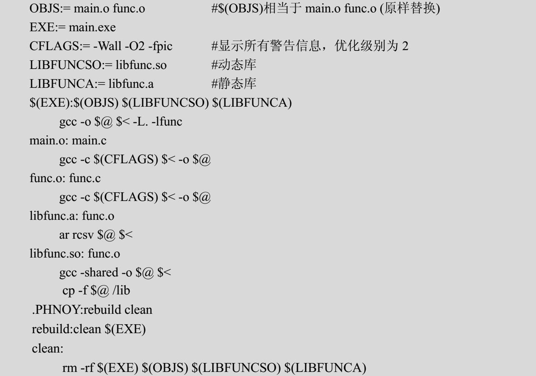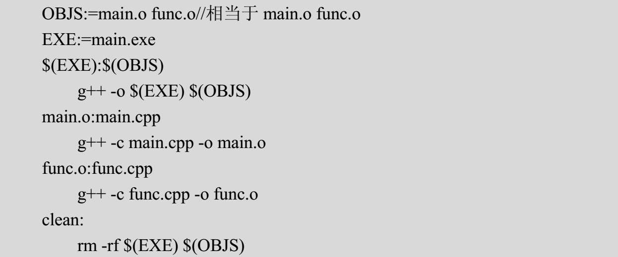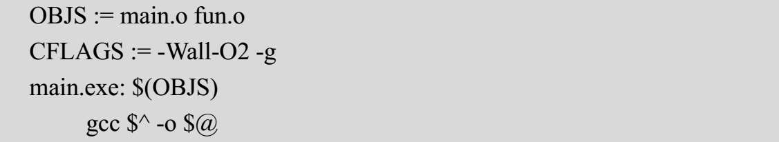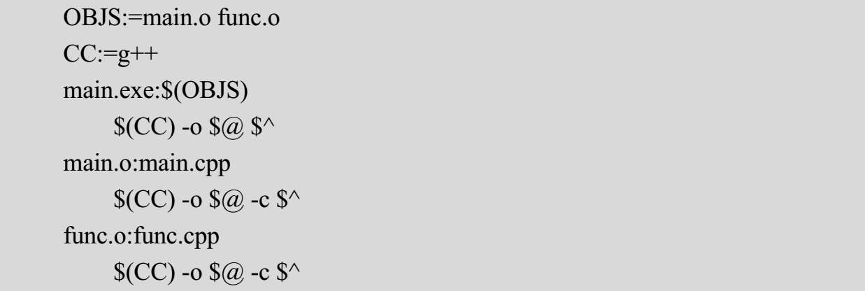 根据内部变量,可以将makefile改写为如下所示的程序。