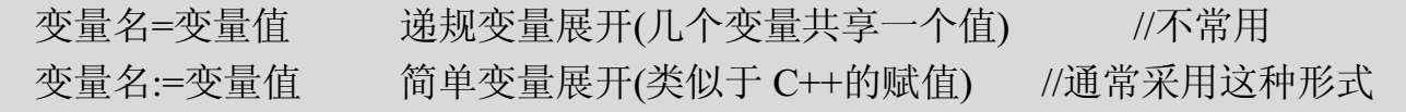 变量分为用户自定义变量、预定义变量、自动变量、环境变量。其中,自动变量指在使用的时候,自动用特定的值替换。