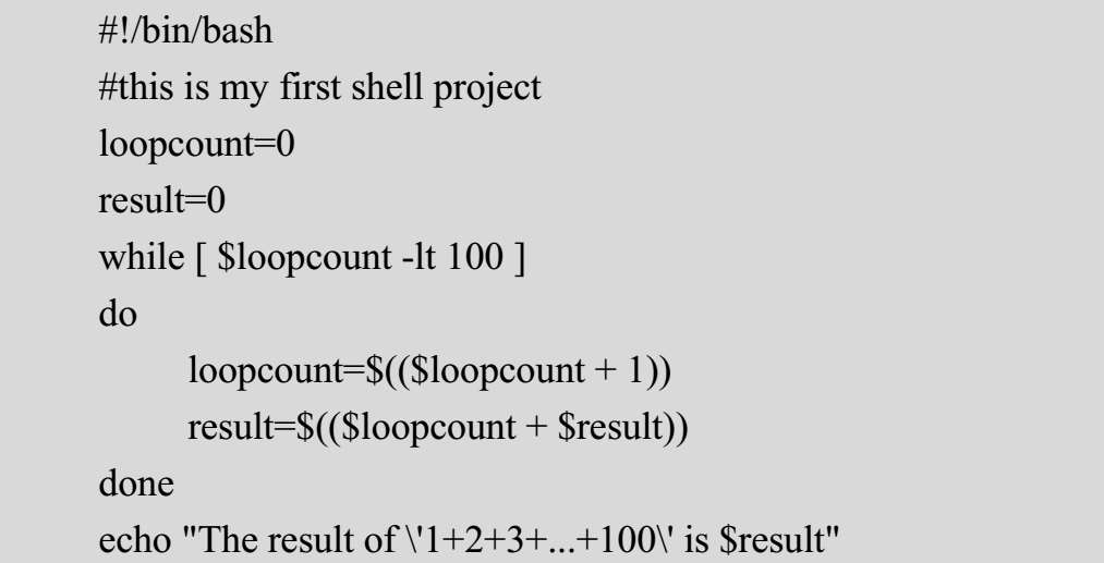 第一行中的#!用来告诉系统其后路径指定的程序就是用来解释、执行该脚本的shell程序。除第一行外,所有以#开始的行都是注释行,不会被执行。shell编程也像高级编程语言一样,有变量定义、流程控制语句等。