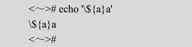 (2)引用变量:echo $a 或 echo ${a} 或 echo“${a}”。注意‘’和“”的区别:单引号消除所有字符的特殊意义;双引号消除除$、””、’’三种以外其他字符的特殊意义。下面举例说明。
