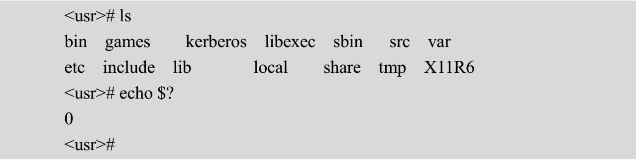 (6)$? 表示上一条命令的执行结果(0表示成功,非0表示失败),或者函数返回值。示例如下。