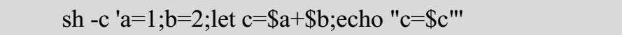 -c选项使shell解释器从一个字符串中(而不是从一个文件中)读取并执行shell命令。当需要临时测试一小段脚本的执行结果时,可以使用这个选项,如下所示。
