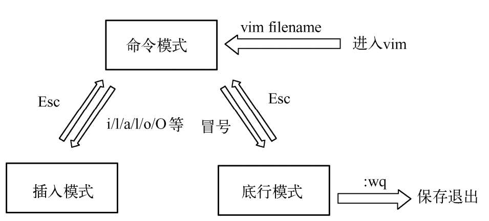 命令模式是vim的默认模式,即进入vim后默认在该模式下,执行编辑命令,如复制、粘贴、查找、替换及删除等操作。无论当前vim处于什么模式下,按下Esc键总是回到命令模式。
