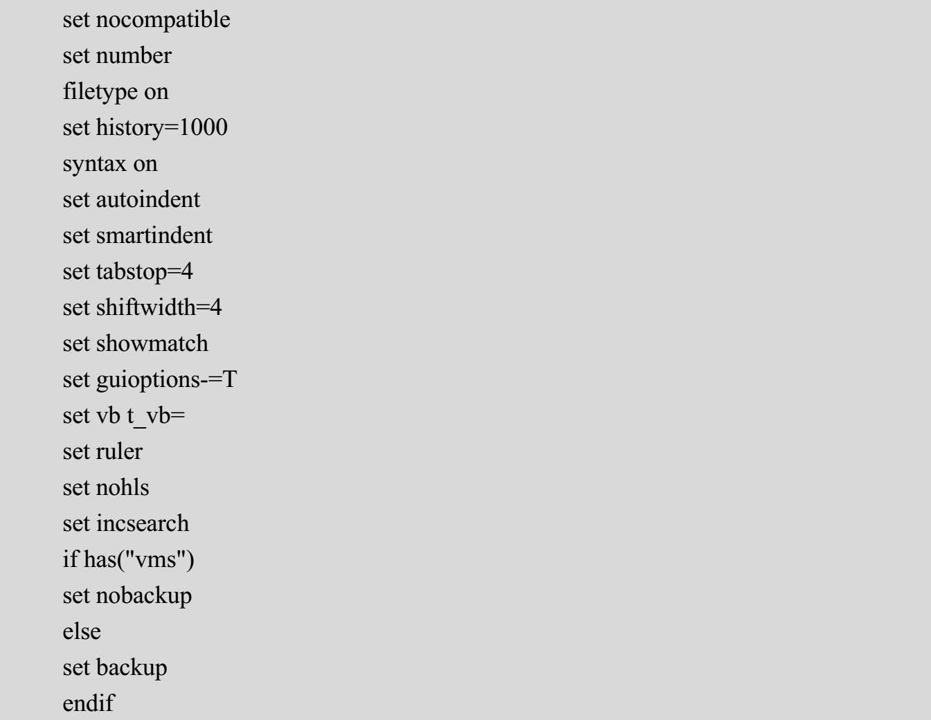 为了更好地在vim下进行工作,需要手动设置一个配置文件:.vimrc。