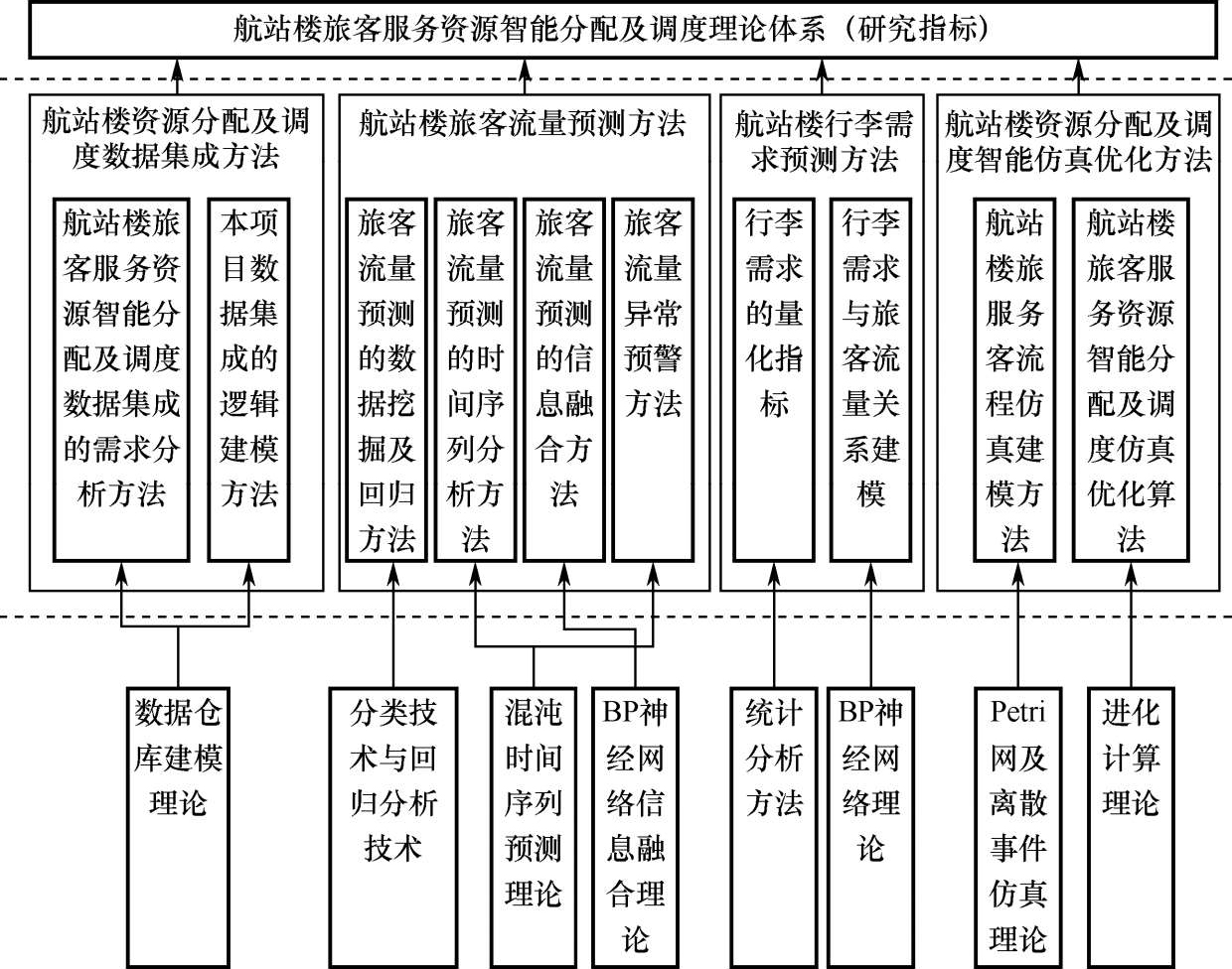 图1-2 航站楼旅客服务资源智能分配及调度的理论体系框架