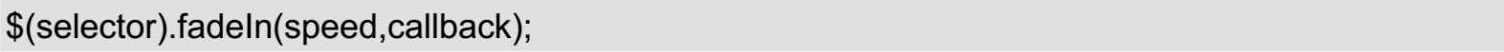 注意: fadeIn()函数适用于通过jQuery框架隐藏的页面元素或在CSS中声明为“display:none”的页面元素,但该函数不适用于在CSS中声明为“visibility:hidden”的页面元素。