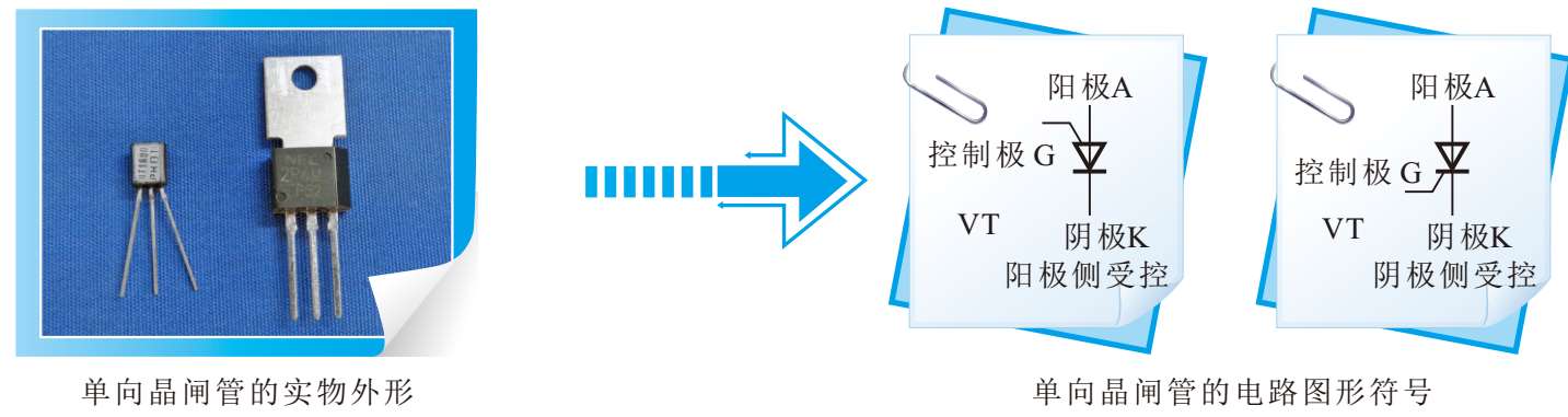 图1-41 单向晶闸管与电路图形符号对照