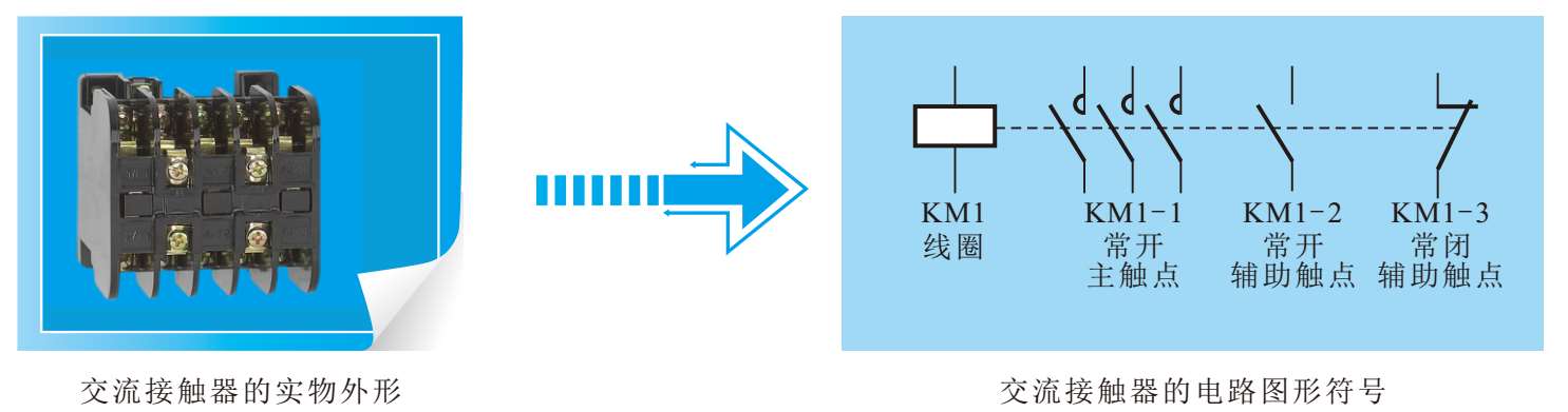 交流接触器与电路图形符号的对照关系如图1-52所示。