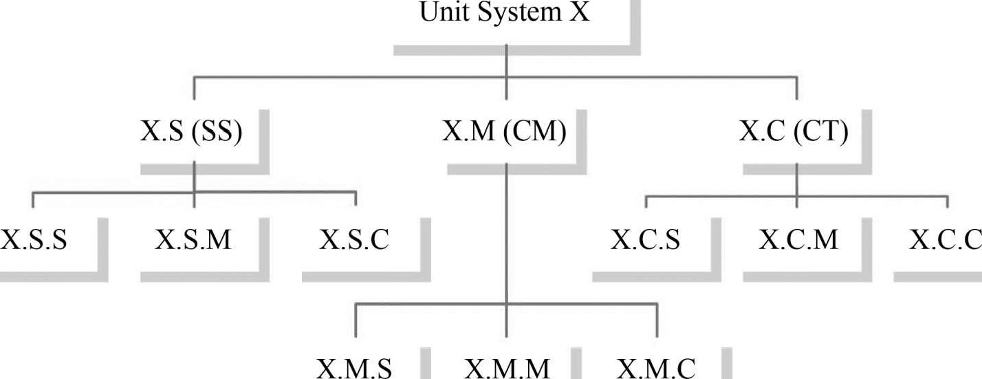 Figure 2.14 shows that an organisation consists of three sub-areas: the substantive area X.S, communication or message-passing area X.M, and control area X.C. each of which can be further divided to provide more detail(Liu, 2000). All three areas are necessary to an organisation. The communication functions are required to inform people and coordinate actions. The control functions will ensure the other areas function properly.Stamper et al. (1994) propose the assumption that an unhealthy organisation has to consume a great deal of its energy in building elaborate communication subsystems and will have to rely largely on formal control subsystems. These two types of subsystems comprise large parts of typical bureaucratic infrastructures. On the other hand, in a well-performed business, resources and energy consumed by substantive activities outweigh the other two types.