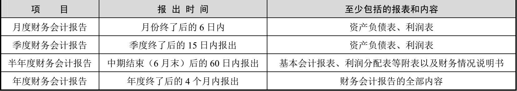 各个期间财务会计报告编制的时间要求和基本内容如表1-8所示。