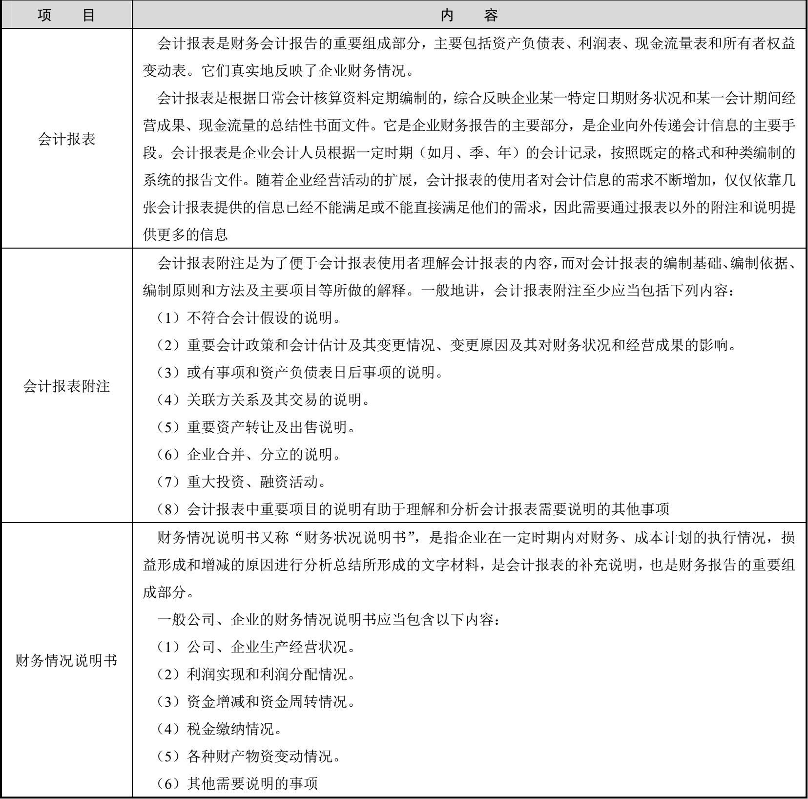 (3)财务报表必须是一套系统性的文件,不应是零星的或者不完整的信息,财务报表是企业财务会计确认与计量的最终结果体现,是向投资者等财务报表使用者提供决策有用信息的媒介和渠道,是沟通投资者、债权人等使用者与企业管理层之间信息的桥梁和纽带。