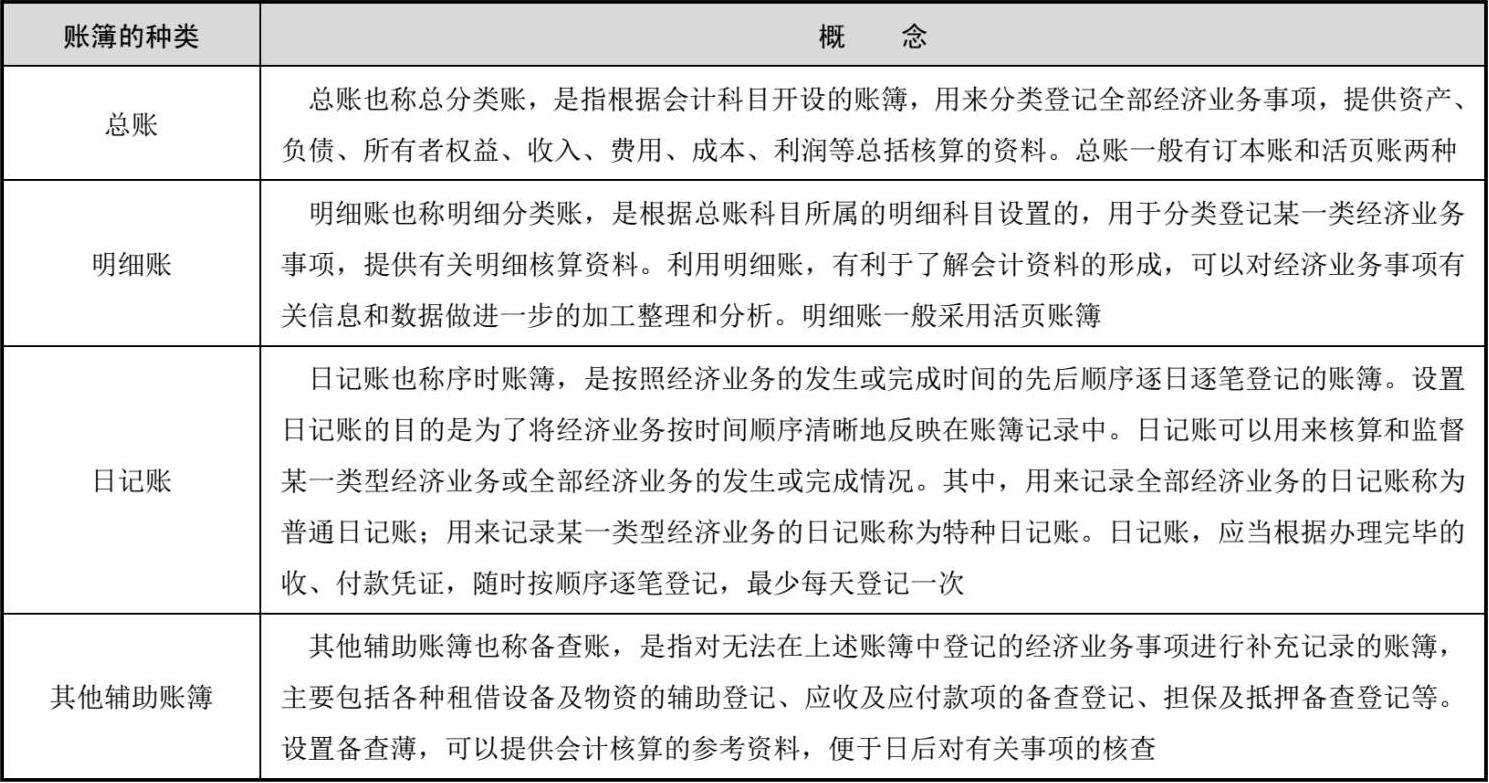 各单位应当依法设置会计账簿的种类如表1- 5所示。