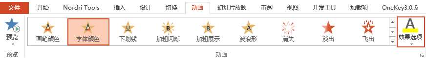 变色移动=淡出+路径+字体颜色(或填充颜色)