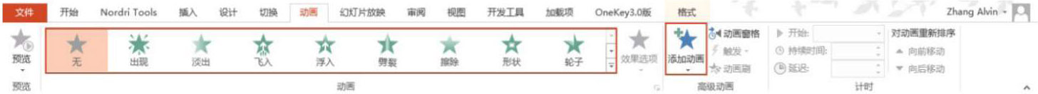 ④注意添加动画和更改动画的区别。 添加动画 :需单击【动画】选项卡→【添加动画】按钮进行操作。 更改动画 :如果直接单击快捷界面中的动画效果,会将原有动画直接更改成新单击(选中)的动画,而不会叠加新的动画,如下图所示。