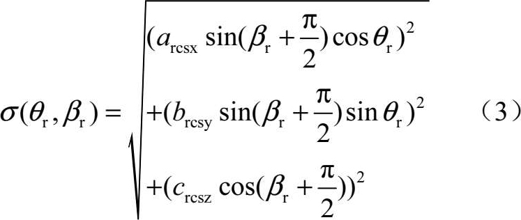 由于一般飞行器前向和尾向回波面积较小,两翼方向较大,俯仰方向回波面积最大,采用文献[8]提出的简易椭球体RCS模型: