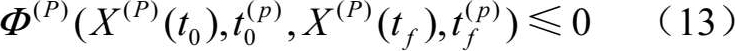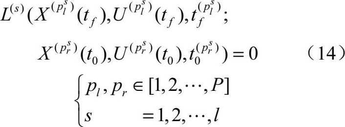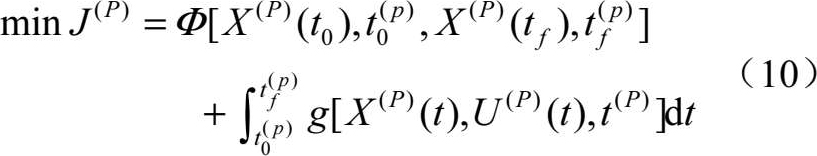 其中,控制变量 U ( t )= [ α ( t ) γ ( t ) δ ( t )] T ,状态变量 X ( t )=[ x a ( t ) y a ( t ) z a ( t ) V a ( t ) γ a ( t ) ψ a ( t )] T , p l 、 p r 表示分段处左右两端, s 表示第 s 个分段点。