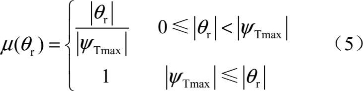 (2)0≤| θ r |< ψ Tmax :当相对目标方位角小于目标雷达最大水平探测角时,UCAV位于目标探测包络范围内;函数取值随| θ r |增大而增大。