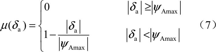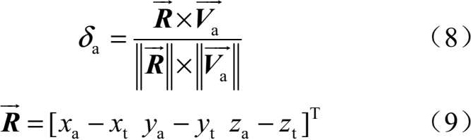 为了能够击毁目标,在目标进入UCAV攻击区域前,UCAV要先使目标在自身雷达的探测区域内,进而让目标在导弹攻击区域内。当UCAV速度矢量与视线夹角 δ a 小于UCAV最大雷达视场角 ψ Amax 时,目标位于UCAV雷达探测范围内。因此,可以构建评价指标为