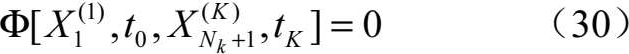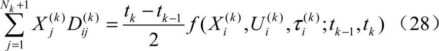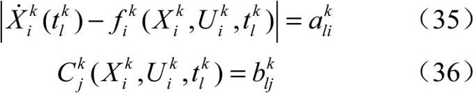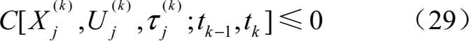 在 N k 个配点处将过程约束 C [ X ( t ), U ( t ), t ] 离散处理,得到如下形式: